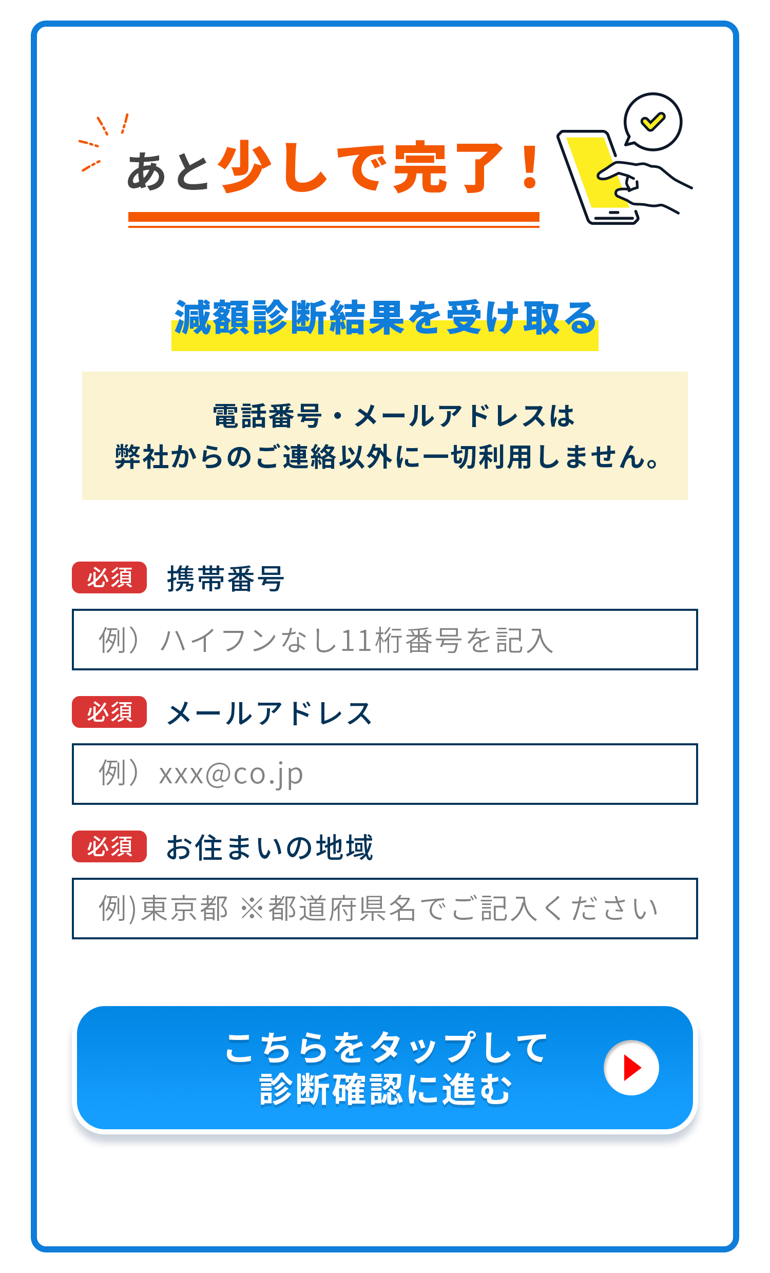 無料で減額診断を行い、あなたの悩み解決につなげます。お手続きもスマホで簡単!